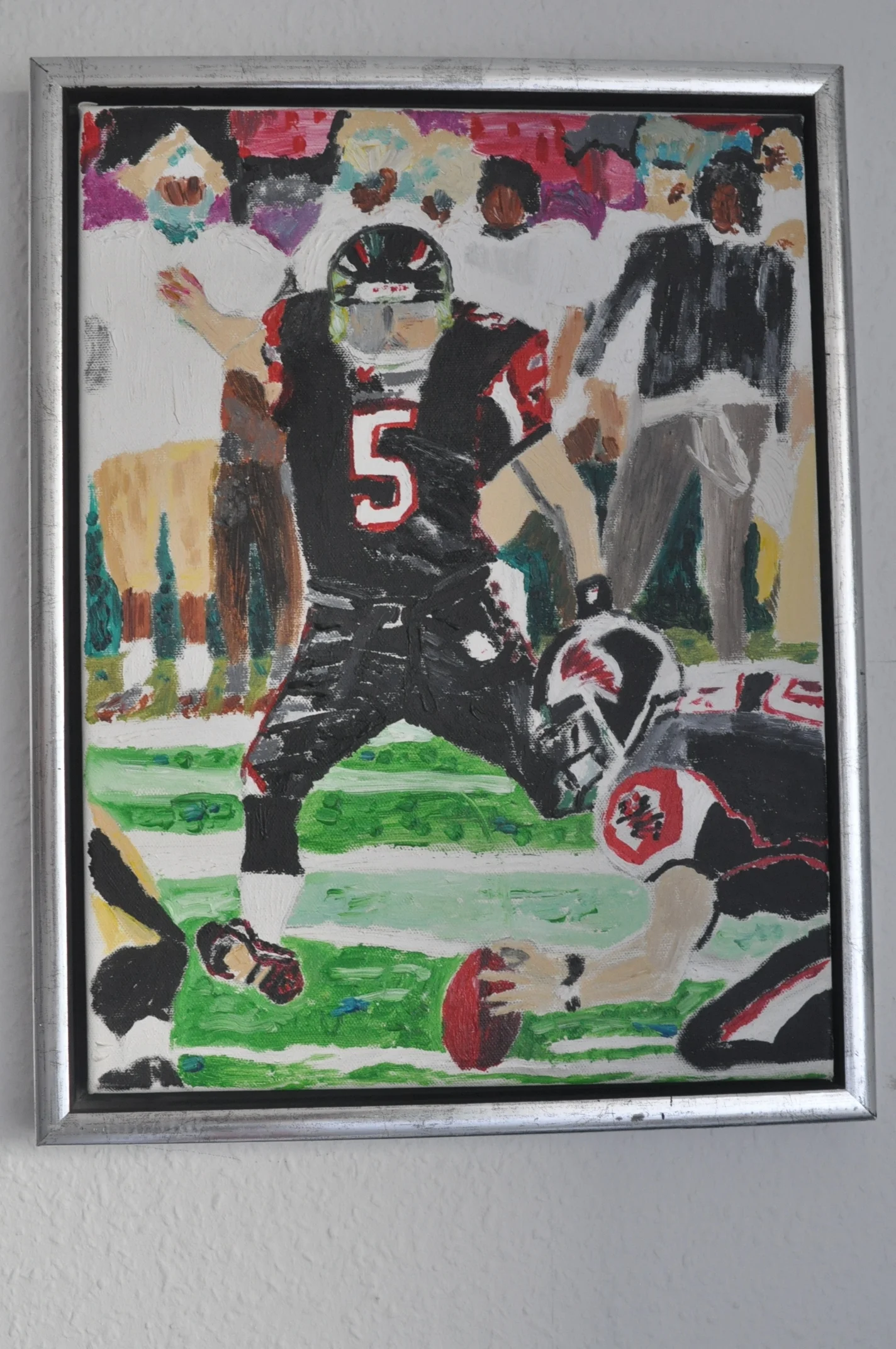 En lille serie af malerieri akrylmaling med forskellige scenerier fra kampe i amerikansk fodbold er en del af galleriet. Ligesom der er enkelte forsøg med materialer som ler, fedtsten og træ.