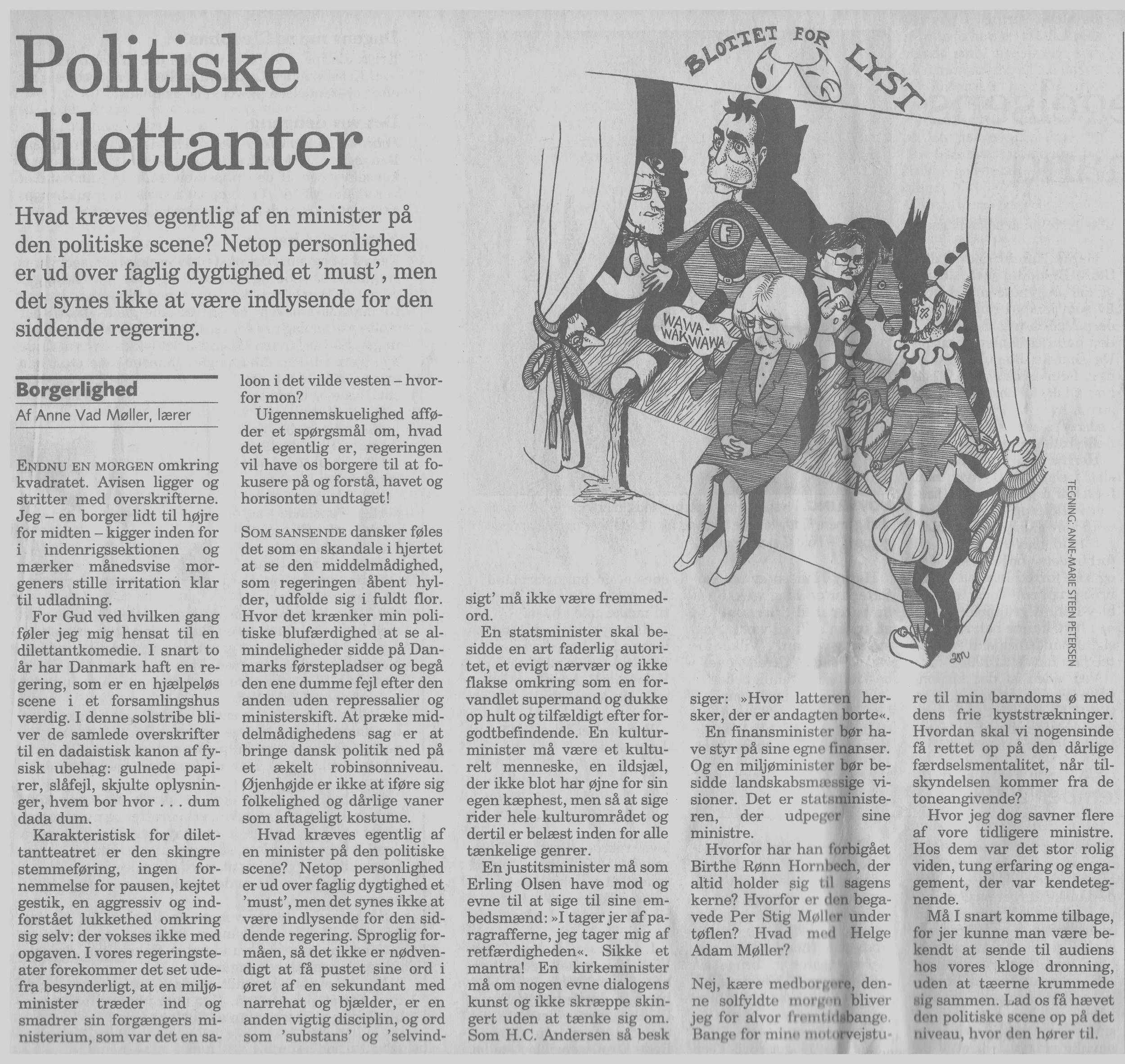 Så er der udkommet et nyt salmebogstillæg med 100 såkaldt nye salmer. Det er tankevækkende, at der i udvalget, der har bedømt de mange tekster, ikke befinder sig en eneste litterat. Det er også forbløffende, at nogle af de tekster, der blev fejet af bordet som usælgeligt wienerbrød af den gamle kompetente salmebogskommission, er blevet 'fejet op' af det nye udvalg. Hvor mange romkugler og studenterbrød er der mon kommet ud af de gamle smuler i det nye tillæg?